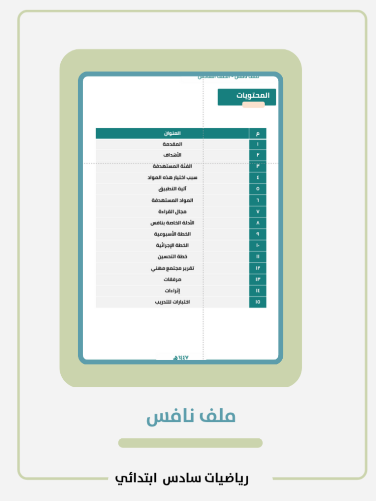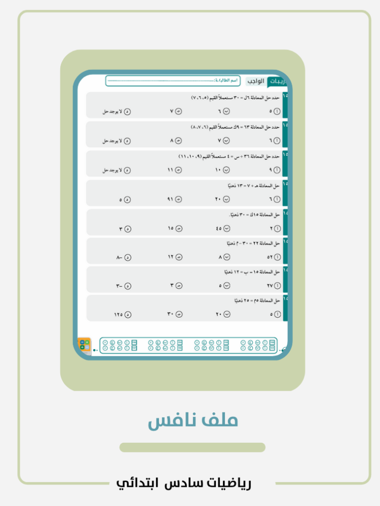 ملف متكامل لنافس للصف السادس الابتدائي الرياضيات ويحتوي على :